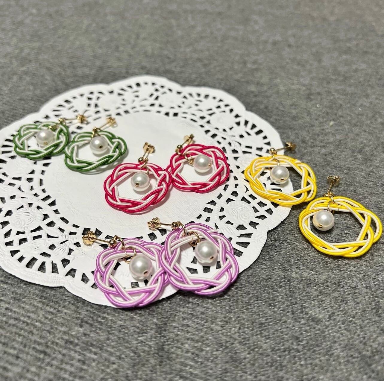 水引(相生結び)を円にし、真ん中にパールを吊るしています。